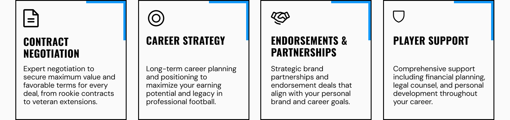 Leverage Football is a premier sports representation agency specializing in professional football athletes. With decades of combined experience in contract negotiation, career planning, and athlete development, we provide comprehensive support to help you maximize your potential at every stage of your career. From draft preparation to free agency and beyond, we're with you every step of the way.